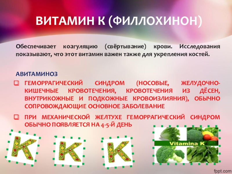 Слайд 10ВИТАМИН К (ФИЛЛОХИНОН)