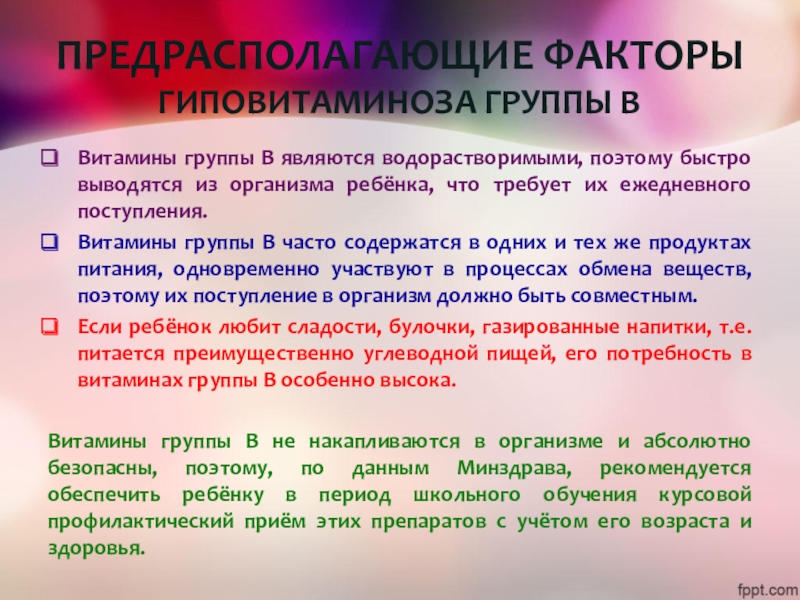 Слайд 18ПРЕДРАСПОЛАГАЮЩИЕ ФАКТОРЫ ГИПОВИТАМИНОЗА ГРУППЫ В
