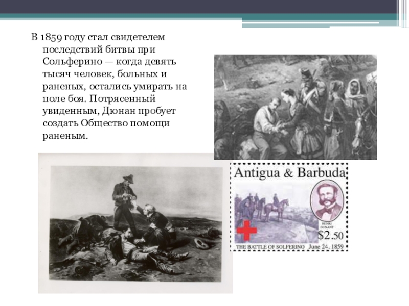 Слайд 3В 1859 году стал свидетелем последствий битвы при Сольферино — когда девять
