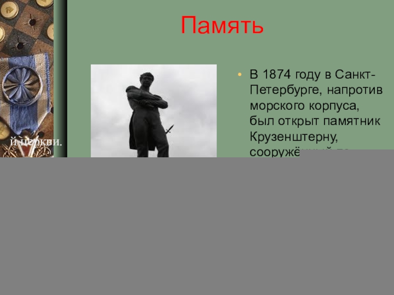 Крузенштерну, сооружённый по проекту скульптора И.Н. Шредера и архитектора И.А Монигетти.
