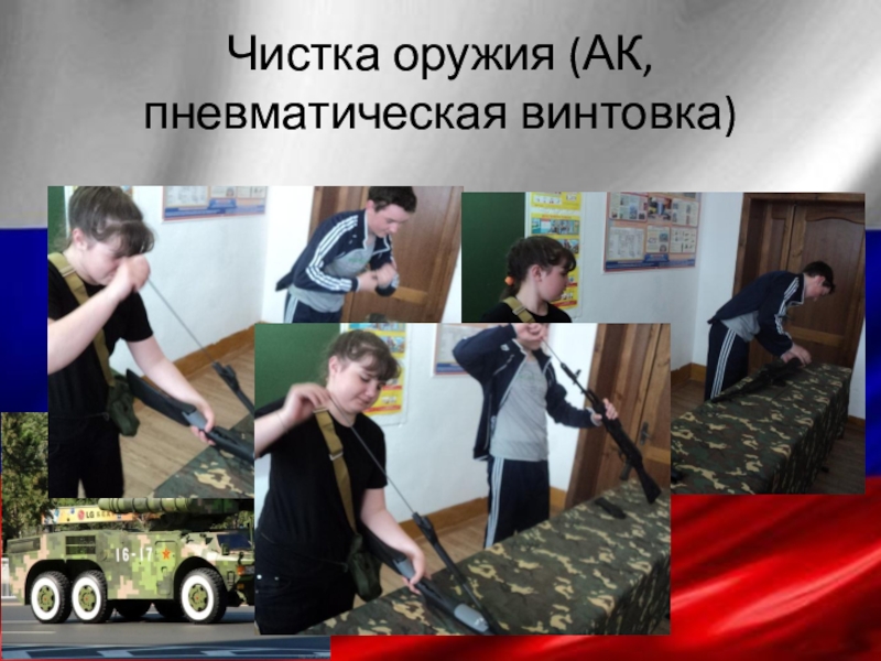Слайд 4Чистка оружия (АК, пневматическая винтовка)