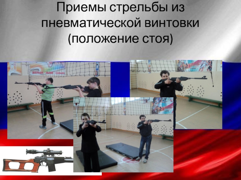 Слайд 9Приемы стрельбы из пневматической винтовки (положение стоя)