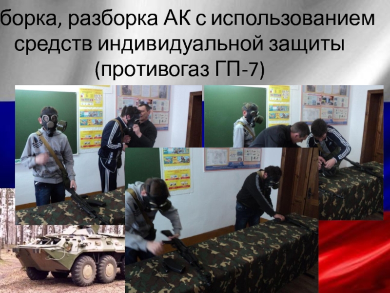 Слайд 3Сборка, разборка АК с использованием средств индивидуальной защиты (противогаз ГП-7)