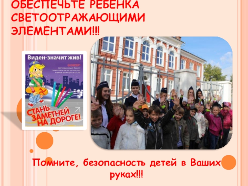 Слайд 31ОБЕСПЕЧЬТЕ РЕБЕНКА СВЕТООТРАЖАЮЩИМИ ЭЛЕМЕНТАМИ!!!