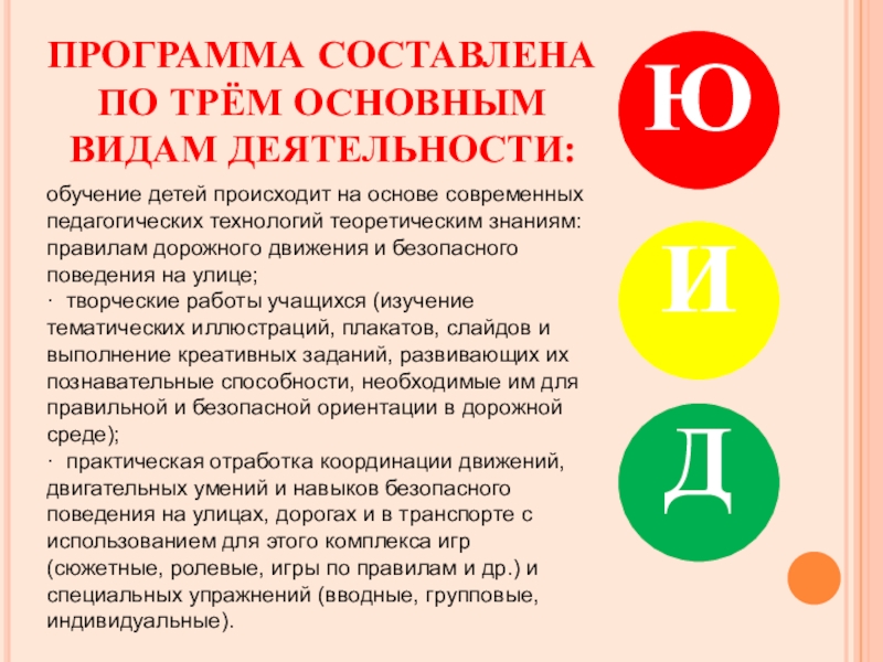 Слайд 9ПРОГРАММА СОСТАВЛЕНА ПО ТРЁМ ОСНОВНЫМ ВИДАМ ДЕЯТЕЛЬНОСТИ: