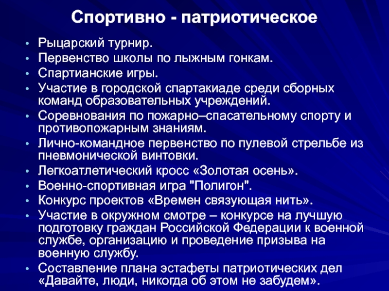Составление плана эстафеты патриотических дел «Давайте, люди, никогда об этом не забудем».