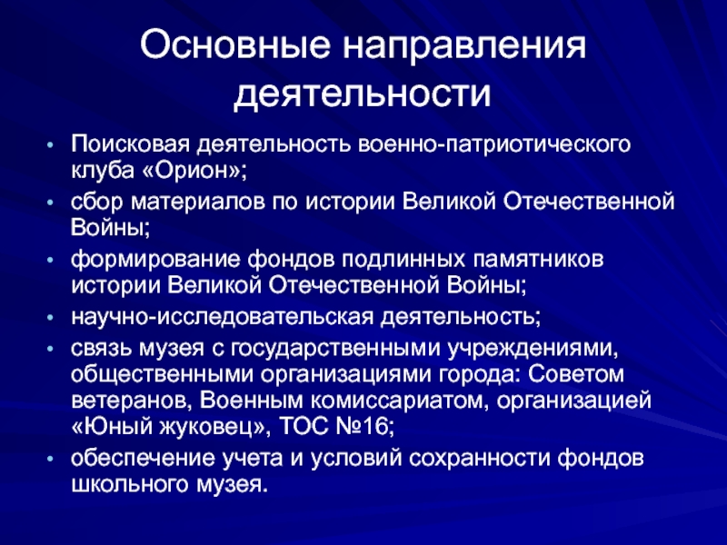 Поисковая деятельность военно-патриотического клуба «Орион»;