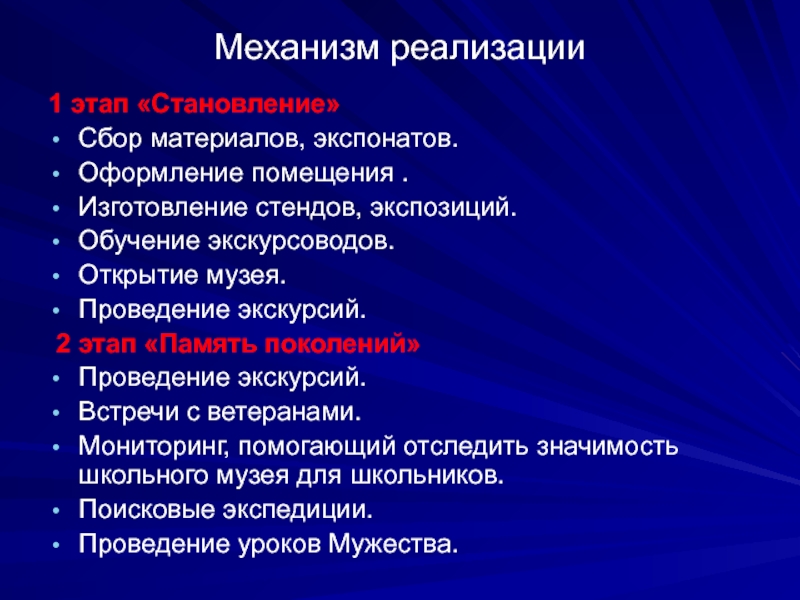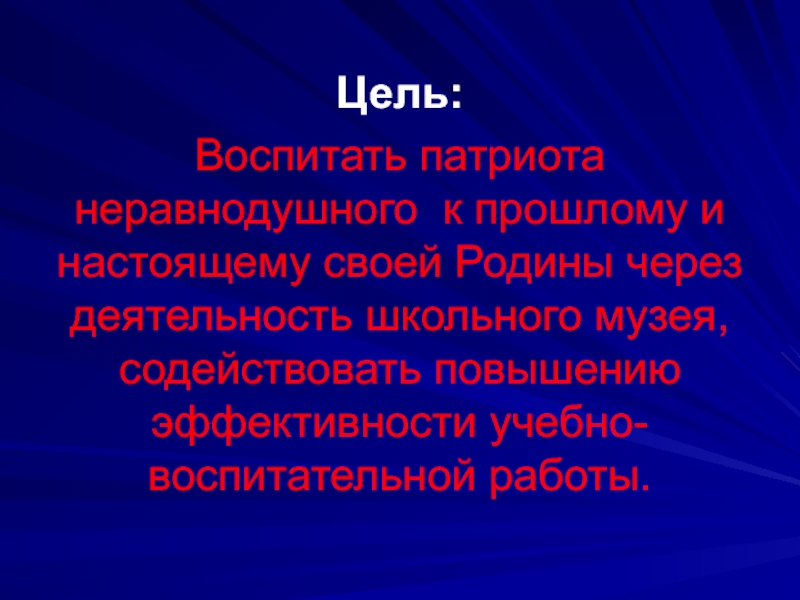 школьного музея, содействовать повышению эффективности учебно-воспитательной работы.