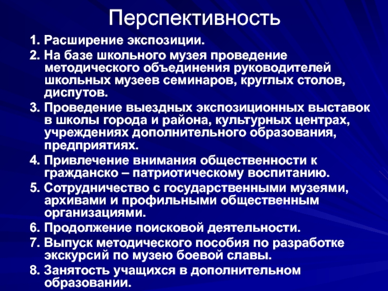 7. Выпуск методического пособия по разработке экскурсий по музею боевой славы.