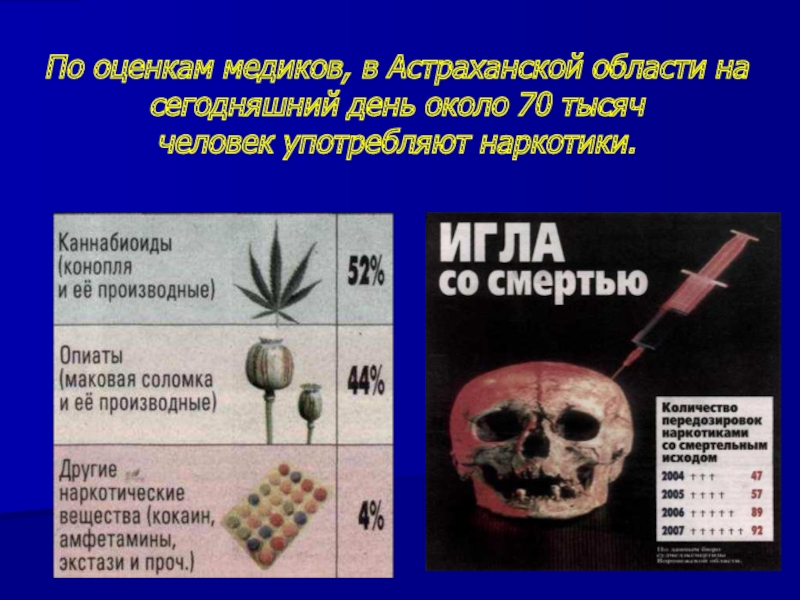Слайд 41По оценкам медиков, в Астраханской области на сегодняшний день около 70