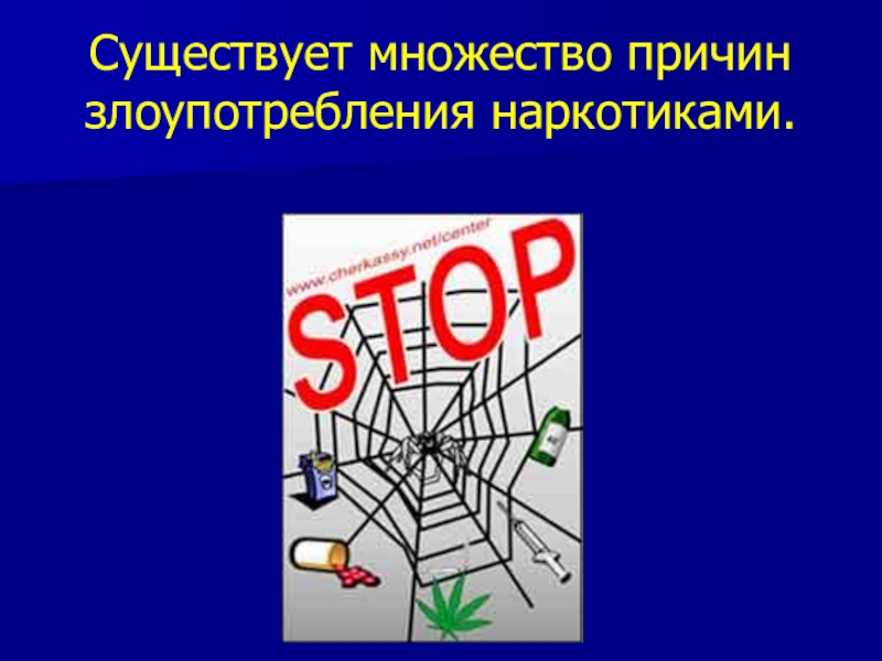 Слайд 17Существует множество причин злоупотребления наркотиками.