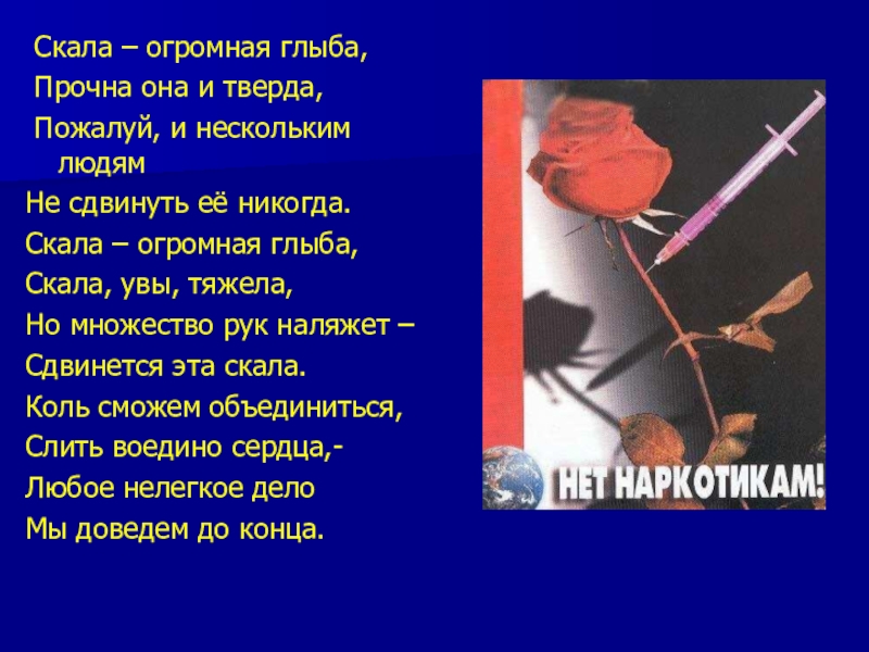 Слайд 47 Искоренить наркоманию – неотложная и гуманнейшая задача. Для этого