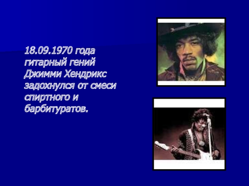 Слайд 25 18.09.1970 года гитарный гений Джимми Хендрикс задохнулся от смеси