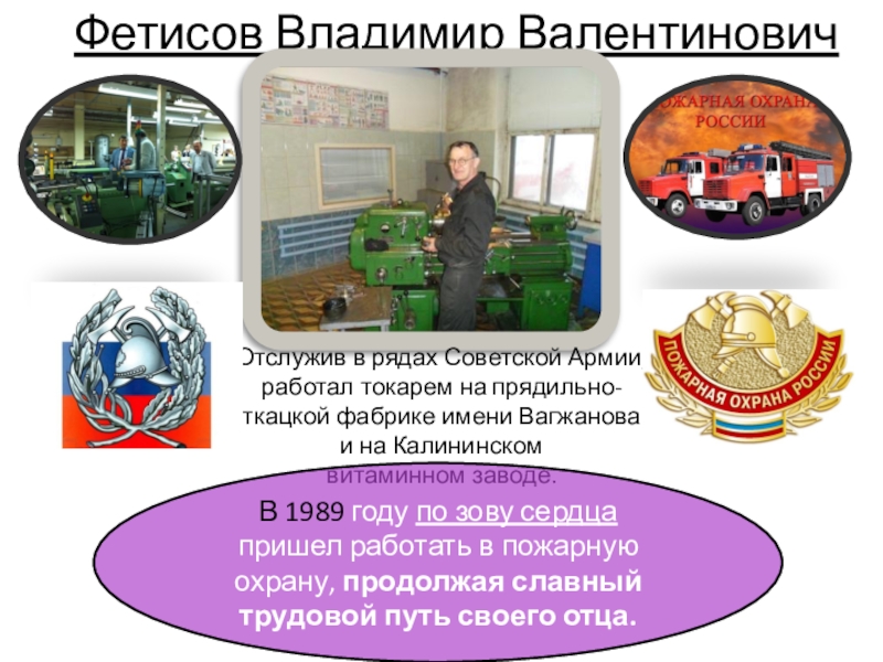 В 1989 году по зову сердца пришел работать в пожарную охрану, продолжая славный трудовой путь своего отца.