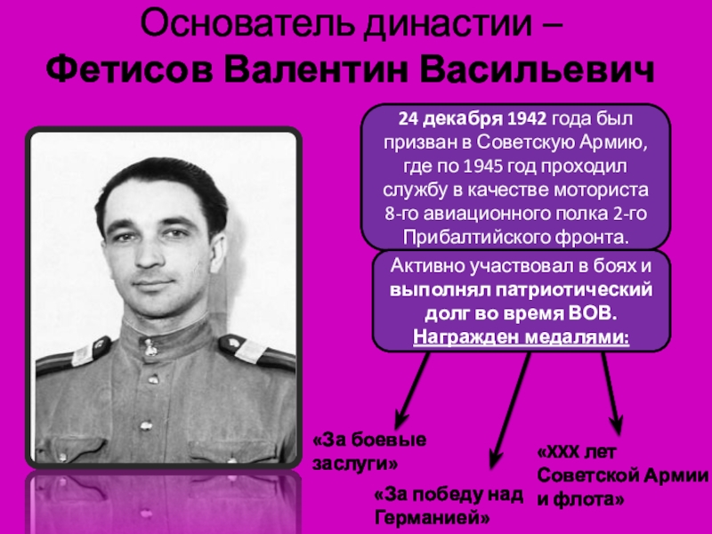 Активно участвовал в боях и выполнял патриотический долг во время ВОВ.
