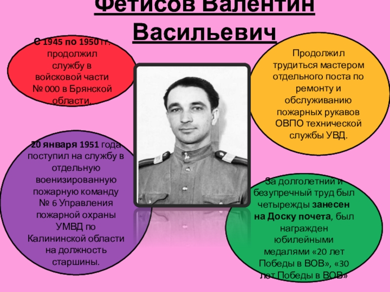 Продолжил трудиться мастером отдельного поста по ремонту и обслуживанию пожарных рукавов ОВПО технической службы УВД.