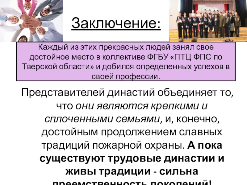 Каждый из этих прекрасных людей занял свое достойное место в коллективе ФГБУ «ПТЦ ФПС по Тверской области» и добился определенных успехов в своей профессии.