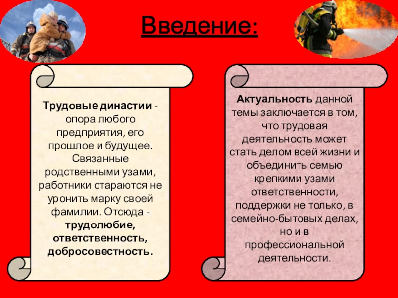 Актуальность данной темы заключается в том, что трудовая деятельность может стать делом всей жизни и объединить семью крепкими узами ответственности, поддержки не только, в семейно-бытовых делах, но и в профессиональной деятельности.