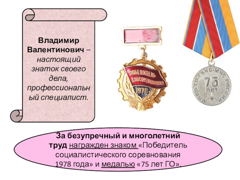 За самоотверженное выполнение долга перед Родиной Владимир Валентинович награжден медалью «За отличие в ликвидации последствий ЧС» и знаком «В память о ликвидации последствий катастрофы на ЧАЭС».
