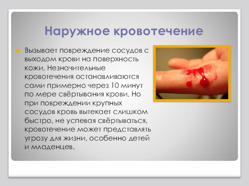 Внешнее кровотечение - острый предмет, например нож, прокалывает кожу и повреждает