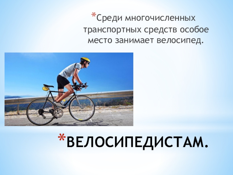 Слайд 2ВЕЛОСИПЕДИСТАМ.