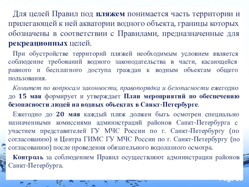 Принят в соответствии с Водным кодексом РФ, постановлением Правительства РФ от 30.12.2003 № 794 «О единой государственной системе предупреждения и ликвидации ЧС», Законом Санкт-Петербурга от 07.02.2007 N 60-13 в целях совершенствования системы охраны жизни людей на водных объектах в Санкт-Петербурге Правительство Санкт-Петербурга.