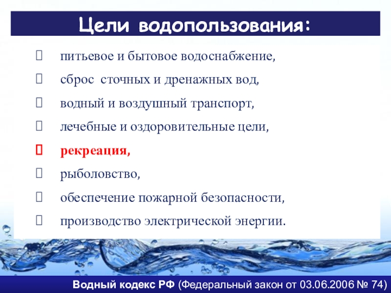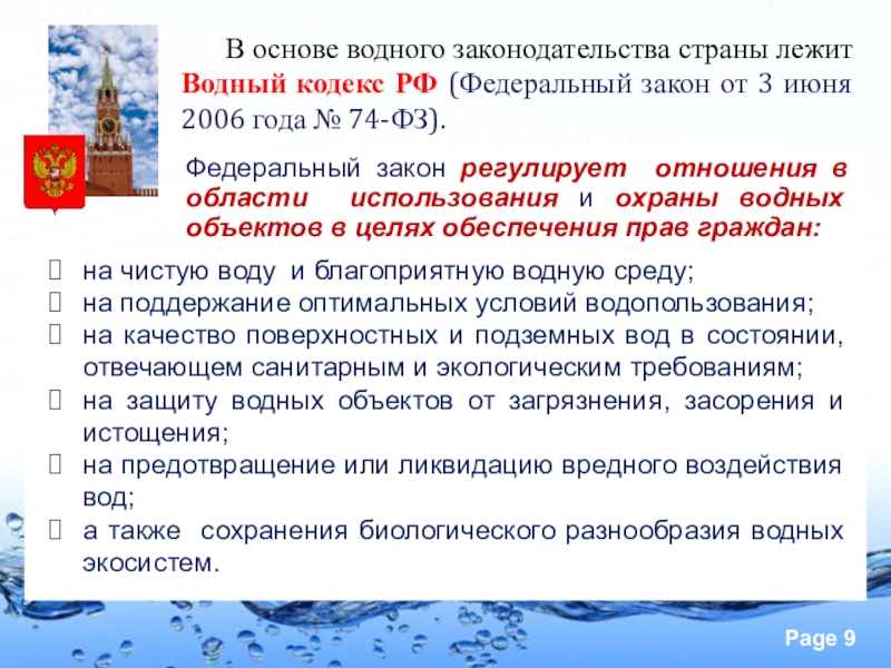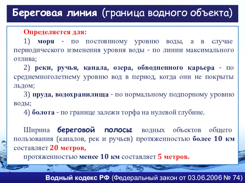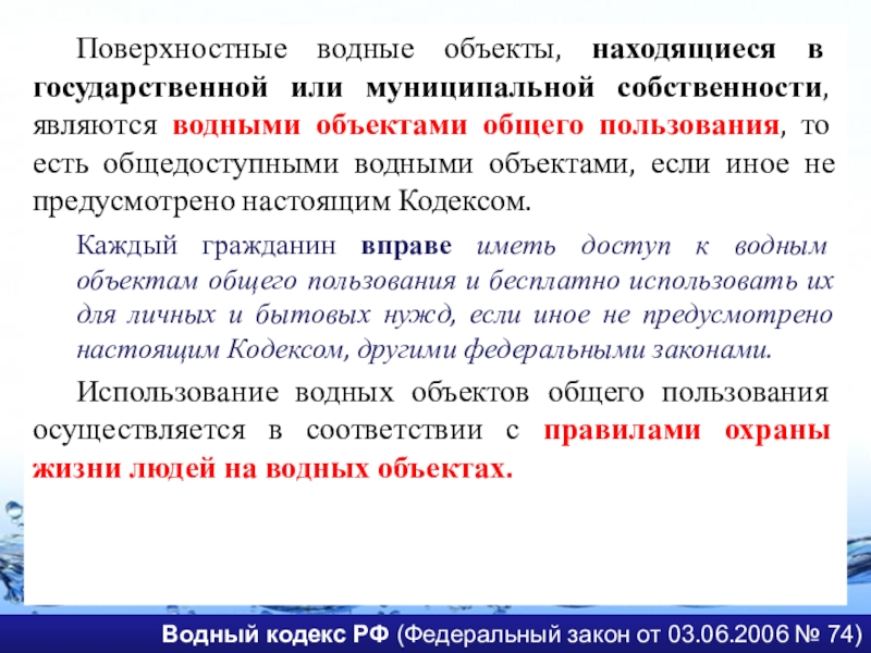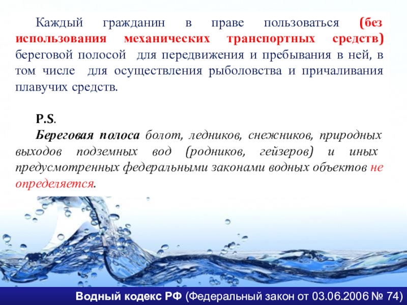 Водный кодекс РФ (Федеральный закон от 03.06.2006 № 74)