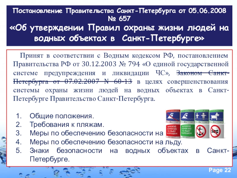 Пост. Пр СПб от 5 июня 2008 года № 657 «Об утверждении Правил охраны жизни людей на водных объектах в Санкт-Петербурге»