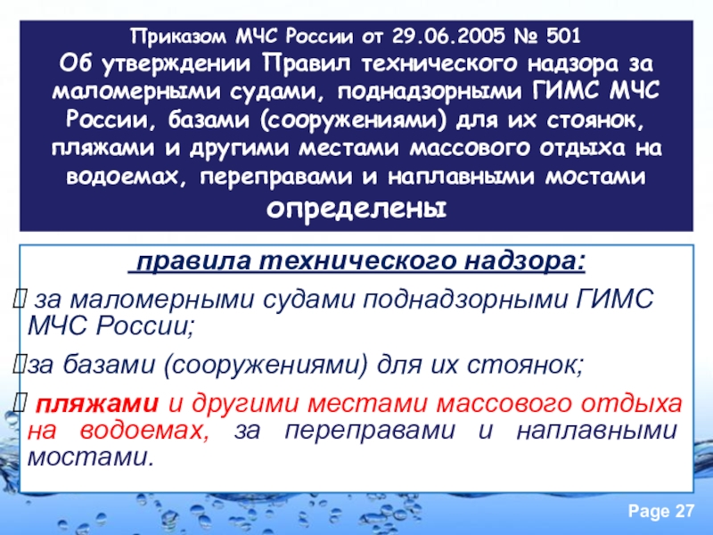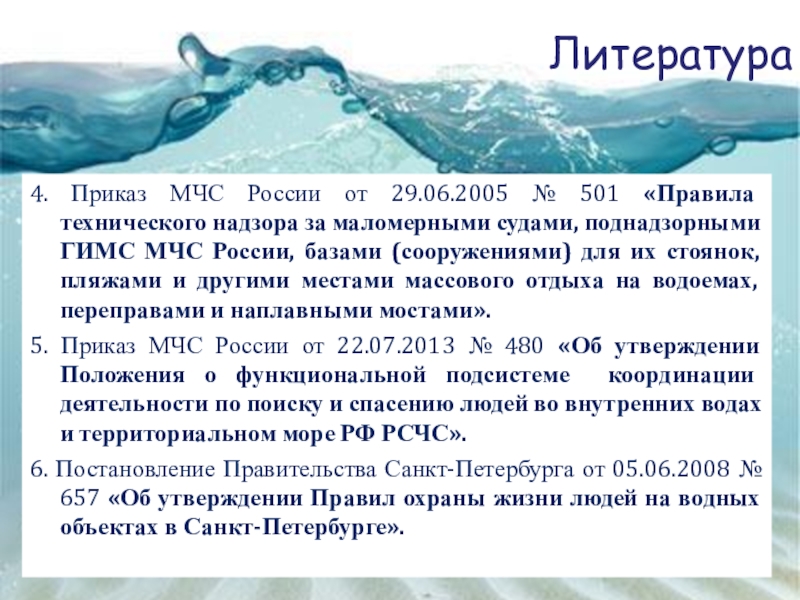 2. Постановление Правительства РФ от 23.12.2004 № 835 «Об утверждении Положения о ГИМС МЧС России».