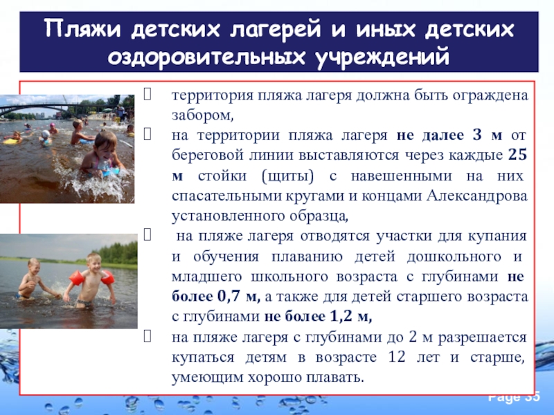 Пляжи детских лагерей и иных детских оздоровительных учреждений