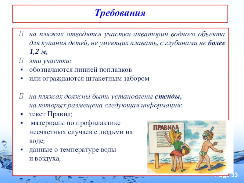 Знак в зеленой рамке. Надпись сверху. Ниже изображены двое детей, стоящих в воде.