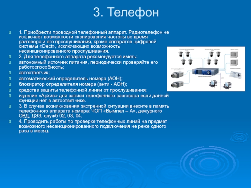 4. Проводить работы по проверке телефонных линий на предмет возможного несанкционированного подключения не реже одного раза в месяц.