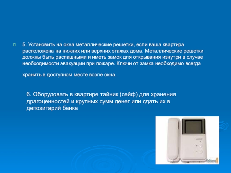 Слайд 45. Установить на окна металлические решетки, если ваша квартира расположена на