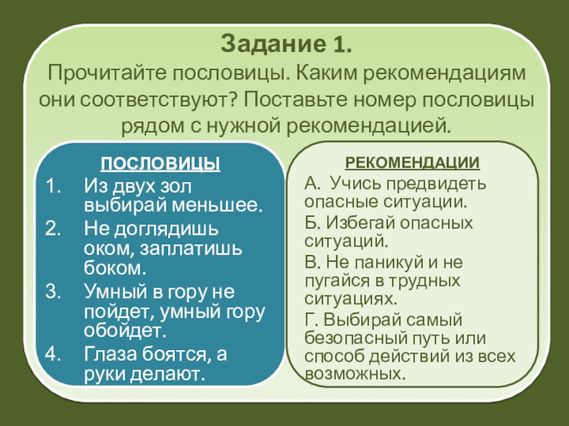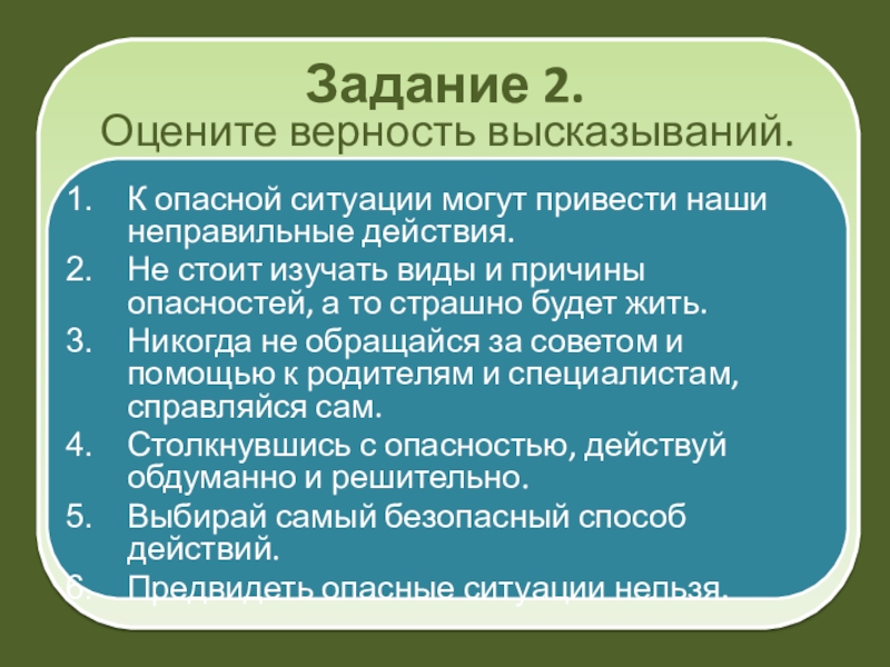 Г. Выбирай самый безопасный путь или способ действий из всех возможных.
