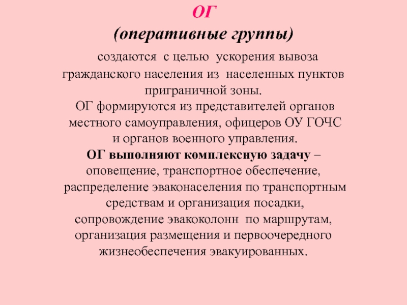 ОГ (оперативные группы) создаются с целью ускорения вывоза гражданского населения из населенных пунктов приграничной зоны. ОГ формируются