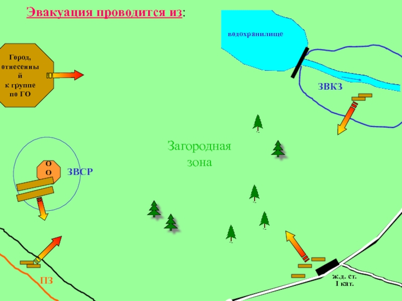 Город, отнесенныйк группе по ГОООВж.д. ст.I кат.водохранилищеЗВКЗПЗЗВСРЗагороднаязонаЭвакуация проводится из: