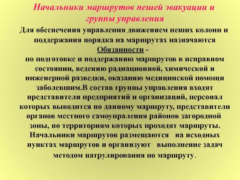 Начальники маршрутов пешей эвакуации и  группы управления Для обеспечения управления движением пеших колонн и