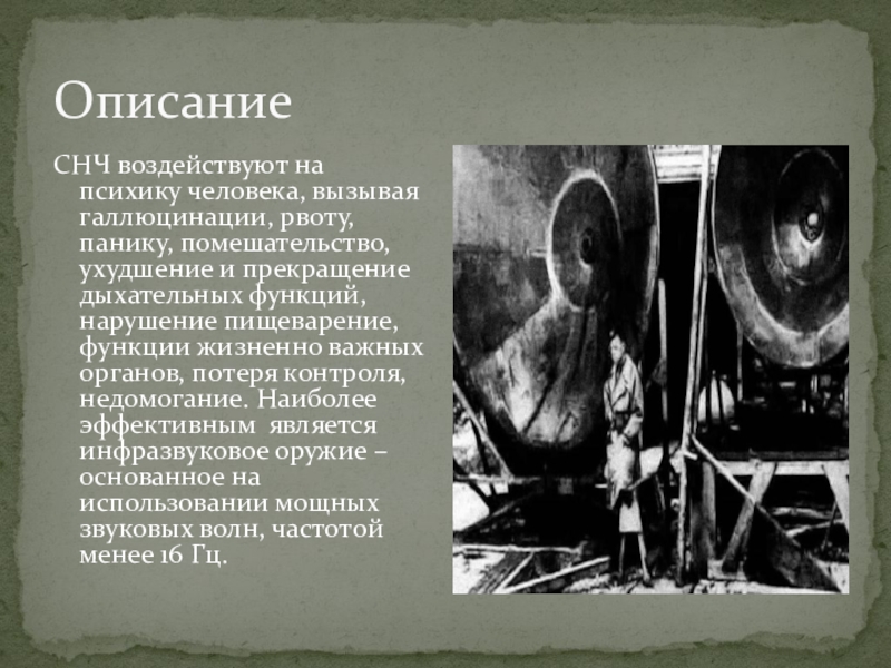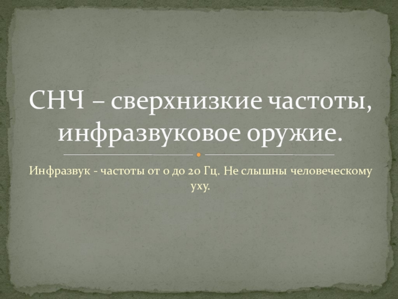 СНЧ – сверхнизкие частоты, инфразвуковое оружие.