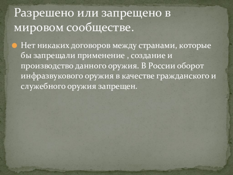 Разрешено или запрещено в мировом сообществе.