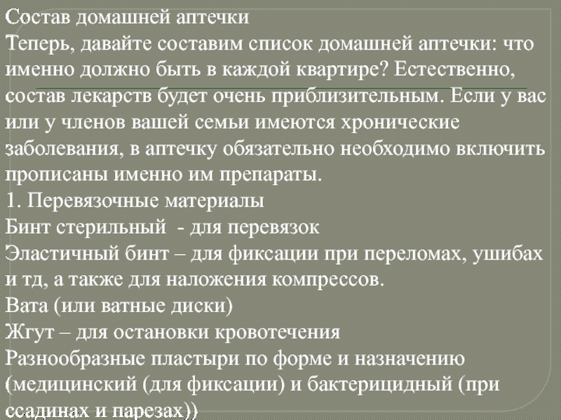 Теперь, давайте составим список домашней аптечки: что именно должно