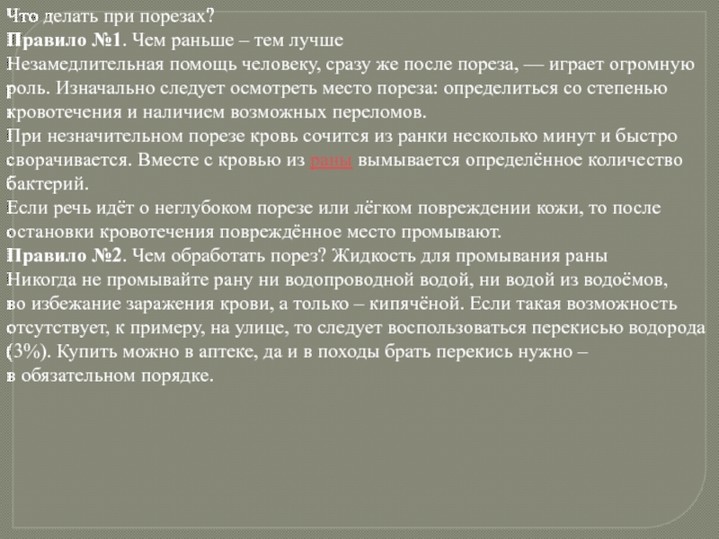 пореза, — играет огромную роль. Изначально следует осмотреть место пореза: определиться со степенью кровотечения и наличием возможных переломов.