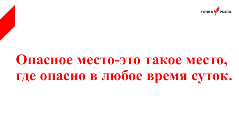Слайд 5Опасное место-это такое место, где опасно в любое время суток.