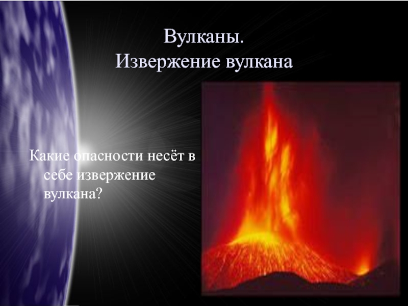 Вулканы. Извержение вулканаКакие опасности несёт в себе извержение вулкана?