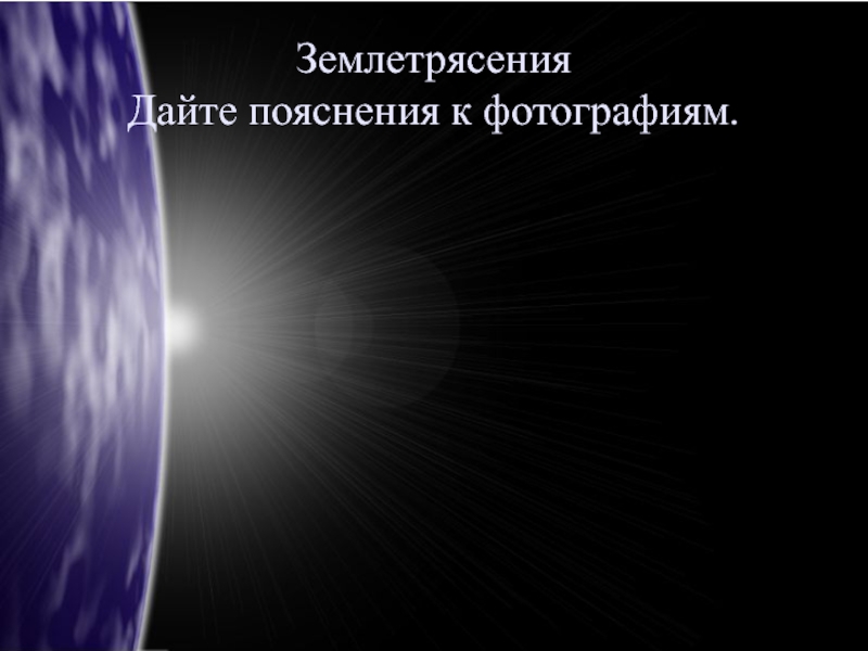Слайд 7Землетрясения Дайте пояснения к фотографиям.