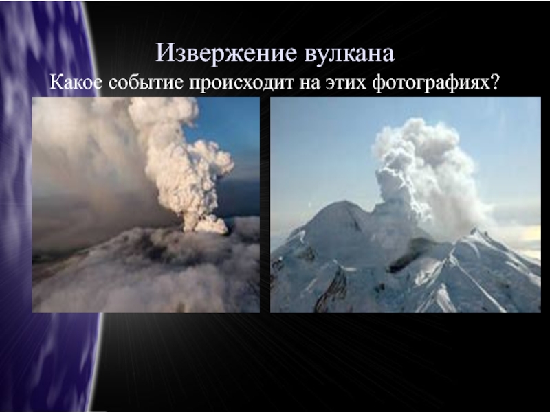 Слайд 13Извержение вулкана Какое событие происходит на этих фотографиях?