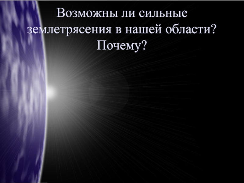 Слайд 10Возможны ли сильные землетрясения в нашей области? Почему?