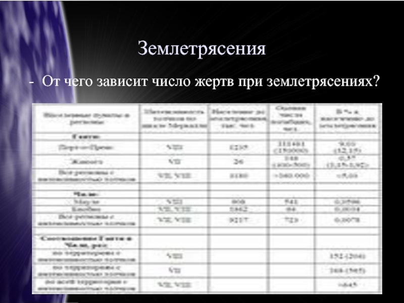Землетрясения- От чего зависит число жертв при землетрясениях?