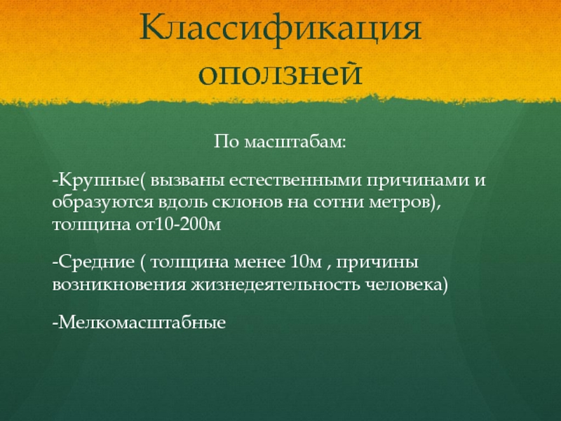 -Средние ( толщина менее 10м , причины возникновения жизнедеятельность человека)