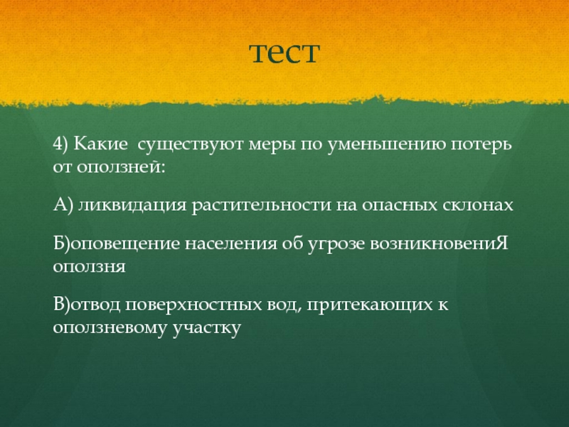 4) Какие существуют меры по уменьшению потерь от оползней: