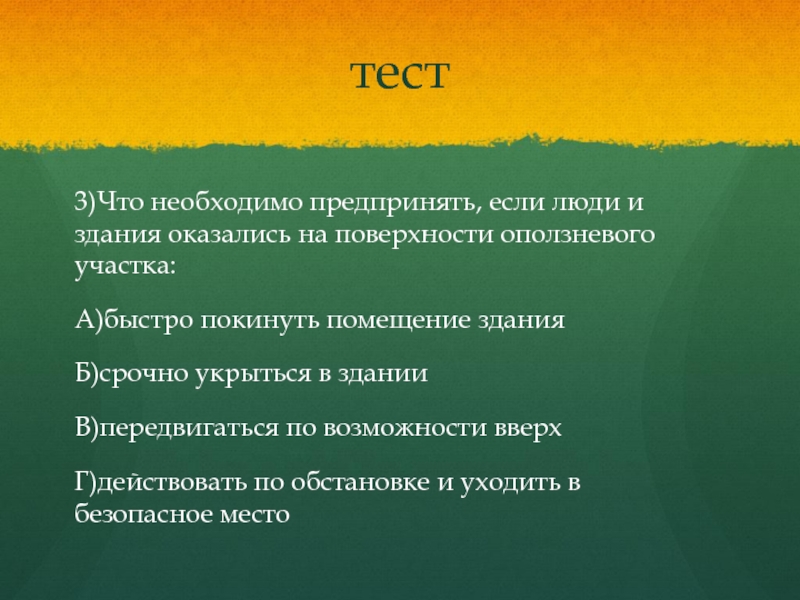3)Что необходимо предпринять, если люди и здания оказались на поверхности оползневого